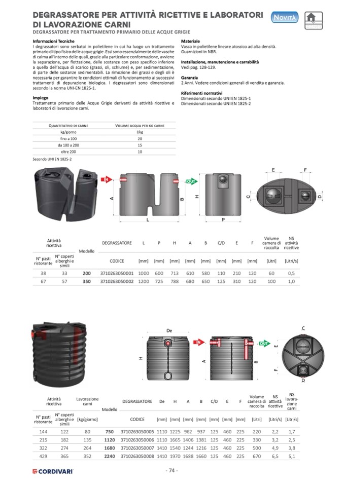trattamenti di depurazione biologica. I degrassatori sono dimensionati