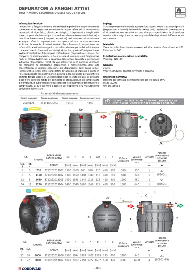 I depuratori a fanghi attivi sono dotati di tubazioni di ingresso e uscita in