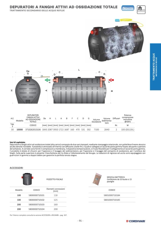 Il prodotto è dotato di chiusini: per l’ispezione e il lavaggio del sedimentatore, per l’ispezione e il lavaggio del comparto di ossidazione, per il prelievo dei