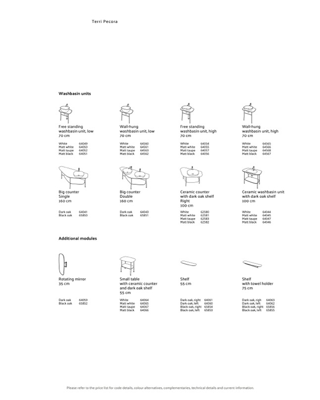 Please refer to the price list for code details, colour alternatives, complementaries, technical details and current information.