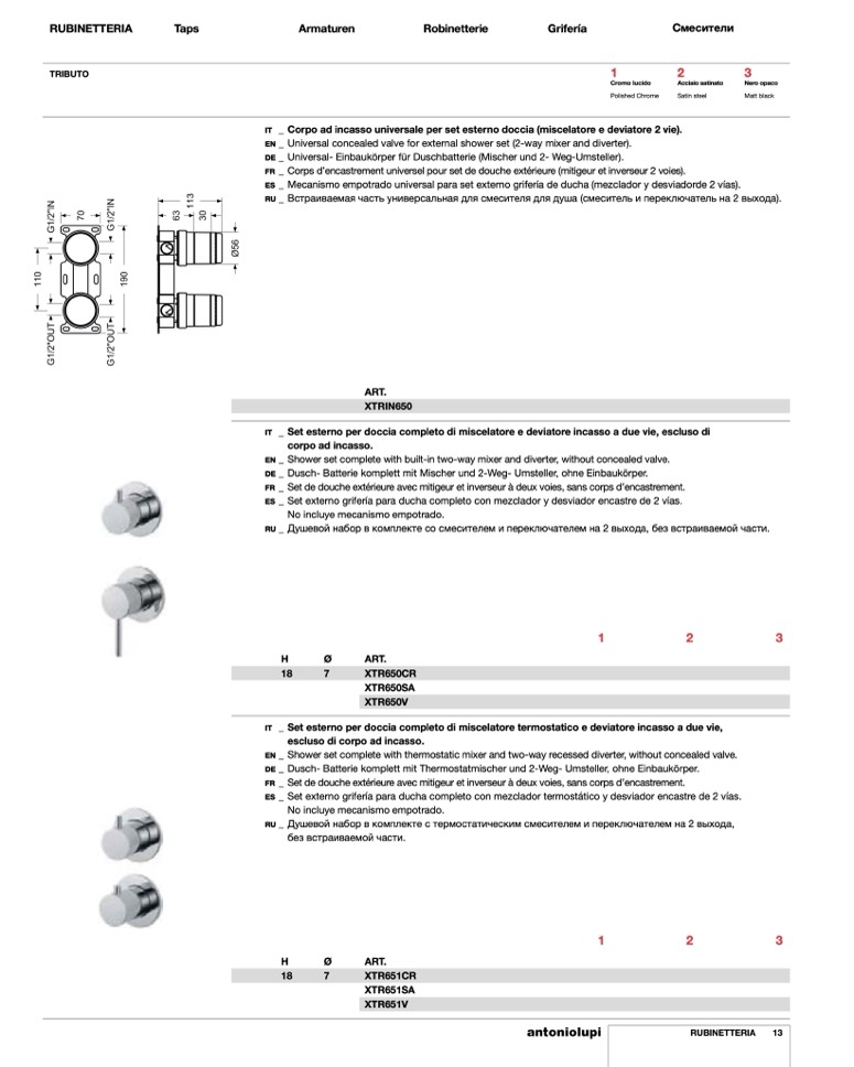 _ Shower set complete with thermostatic mixer and two-way recessed diverter, without concealed valve.