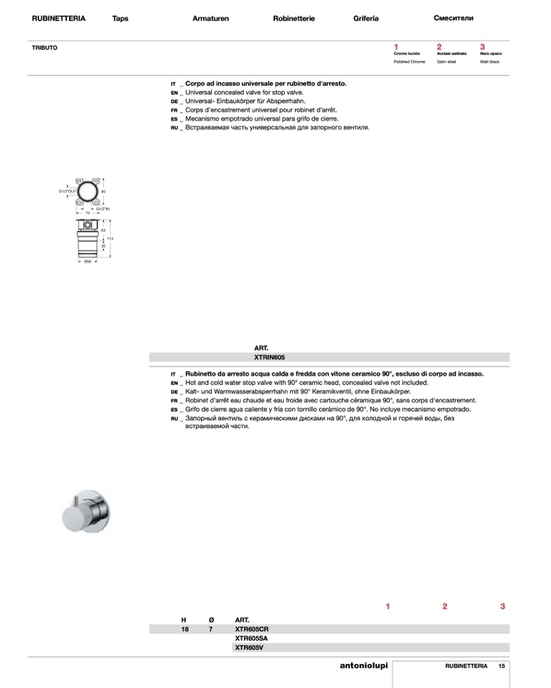_ Hot and cold water stop valve with 90° ceramic head, concealed valve not included.