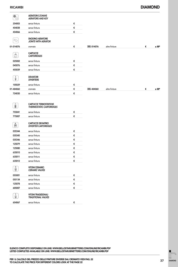 ELENCO COMPLETO DISPONIBILE ON LINE: WWW.BELLOSTARUBINETTERIE.COM/ONLINE/RICAMBI.PDF
