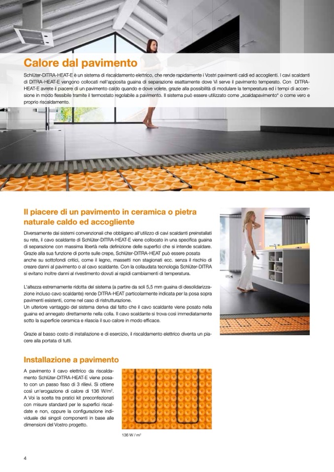 Schlüter-DITRA-HEAT-E è un sistema di riscaldamento elettrico, che rende rapidamente i Vostri pavimenti caldi ed accoglienti. I cavi scaldanti