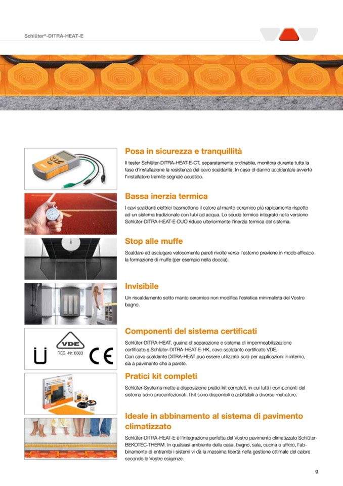 certificato e Schlüter-DITRA-HEAT-E-HK, cavo scaldante certificato VDE.