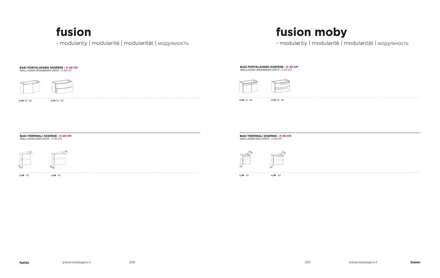 WALL-HUNG WASHBASIN UNITS - H 49 CM