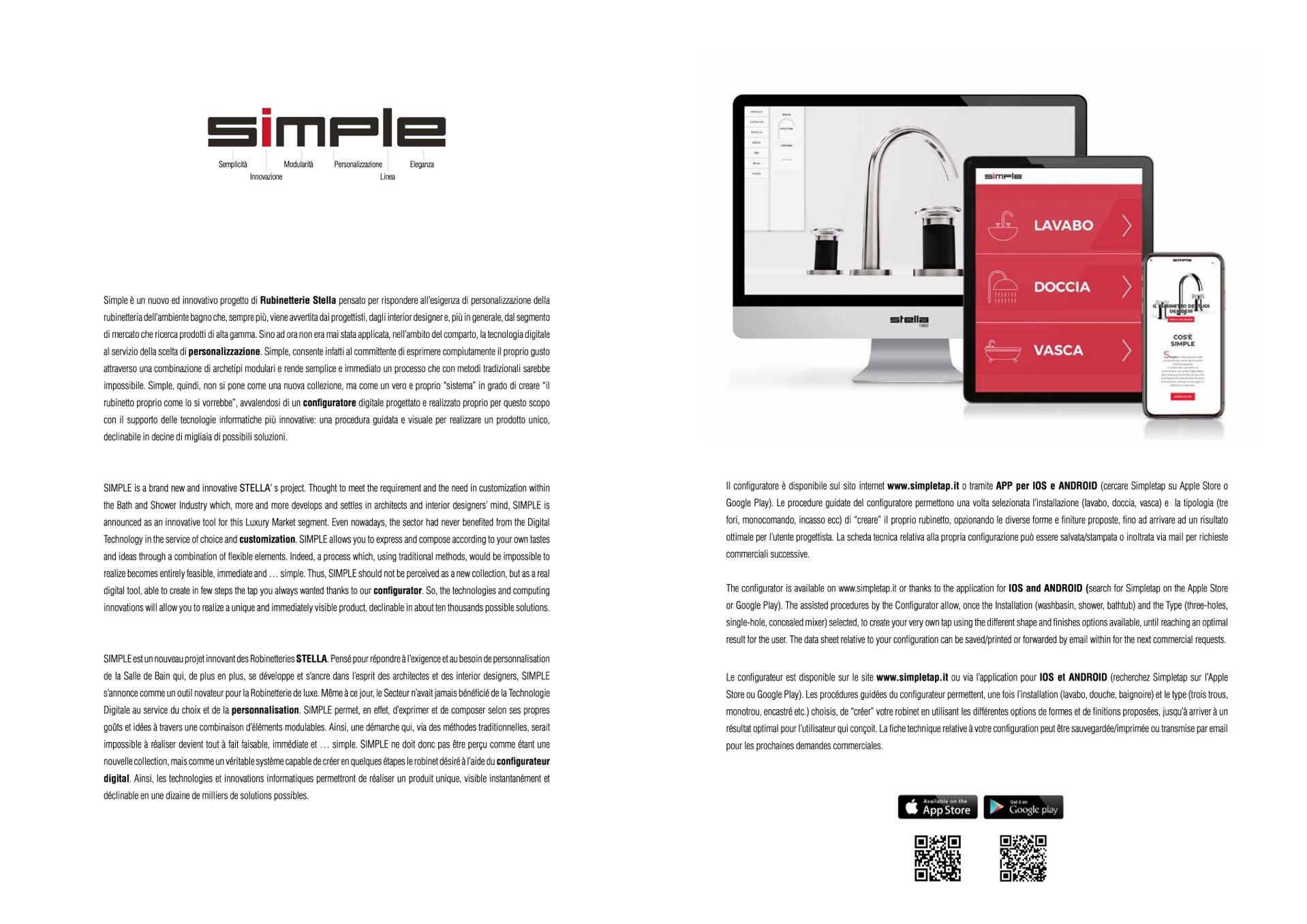 Le configurateur est disponible sur le site www.simpletap.it ou via l’application pour IOS et ANDROID (recherchez Simpletap sur l’Apple