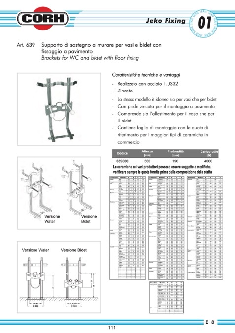 Brackets for WC and bidet with floor fixing