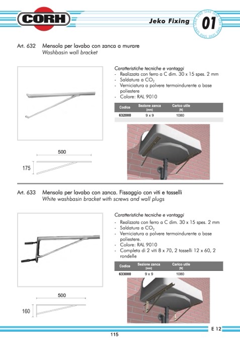 Mensola per lavabo con zanca. Fissaggio con viti e tasselli