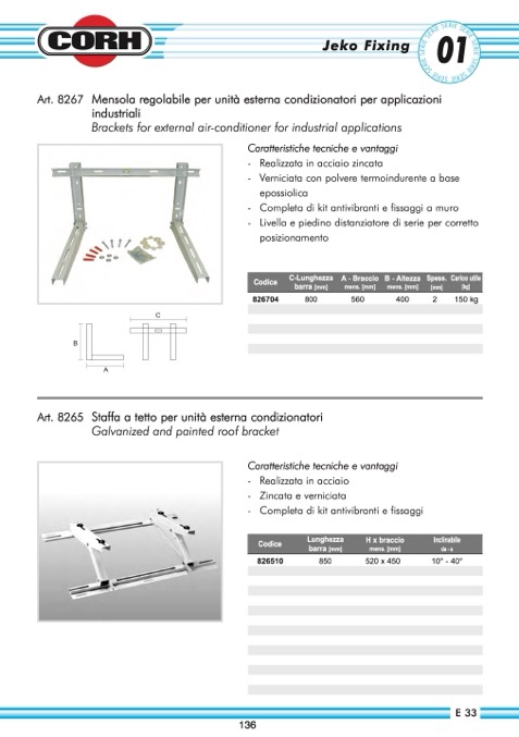 Staffa a tetto per unità esterna condizionatori