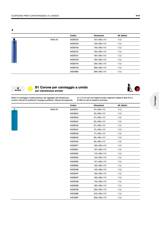 CORONE PER CAROTAGGIO A UMIDO