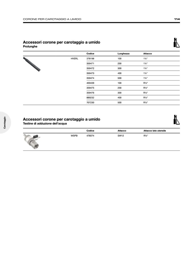 CORONE PER CAROTAGGIO A UMIDO