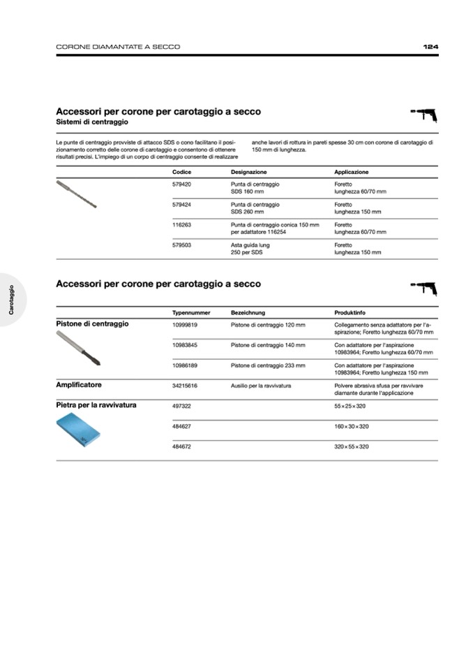 Le punte di centraggio provviste di attacco SDS o cono facilitano il posi-
