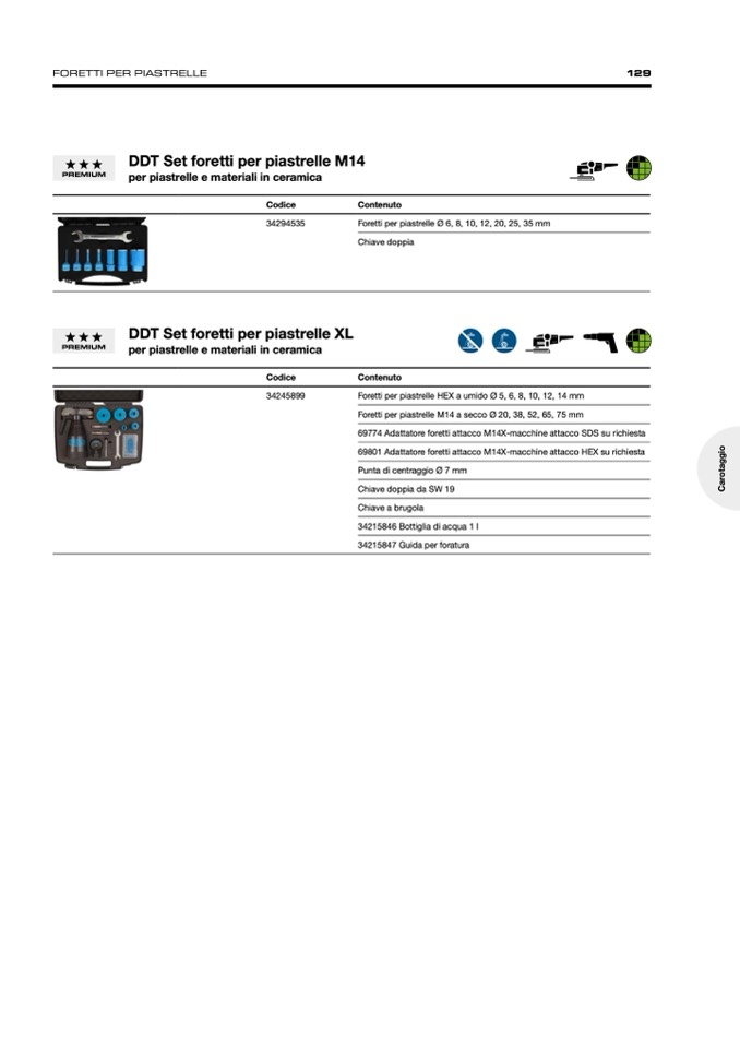 Foretti per piastrelle M14 a secco Ø 20, 38, 52, 65, 75 mm