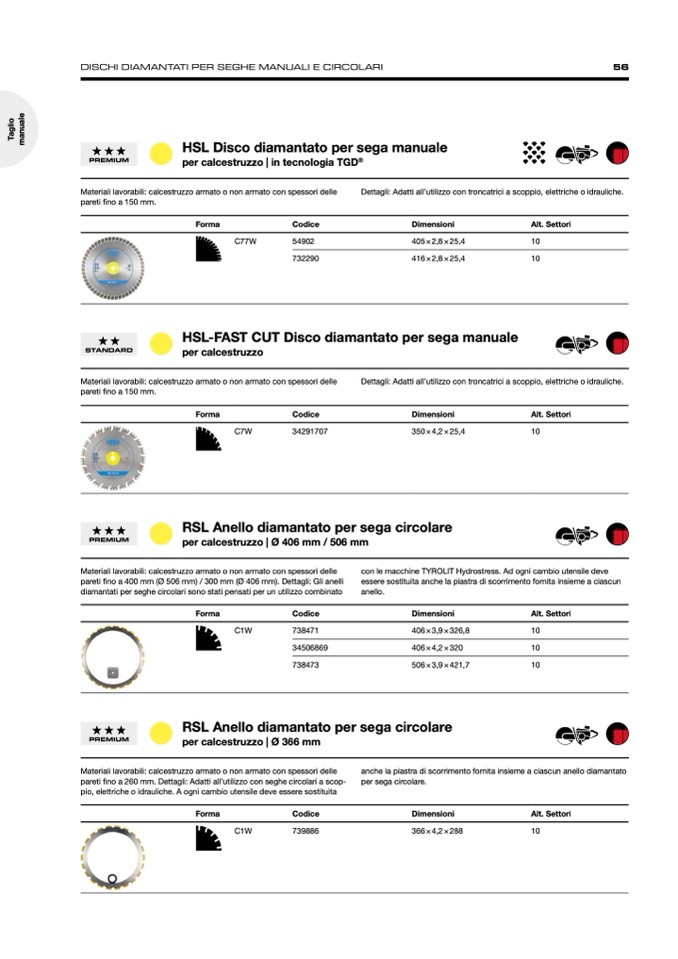 Dettagli: Adatti all’utilizzo con troncatrici a scoppio, elettriche o idrauliche.