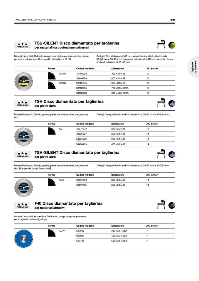 pomice, mattone, ecc. Rumorosità ridotta fino a 10 dB.