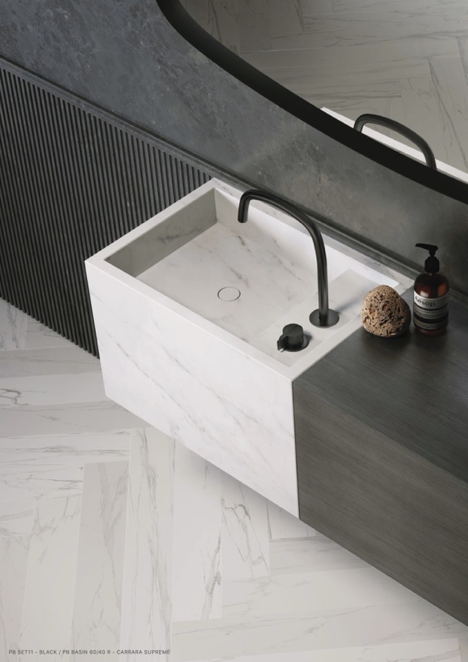 PB SET11 - BLACK / PB BASIN 60/40 R - CARRARA SUPREME