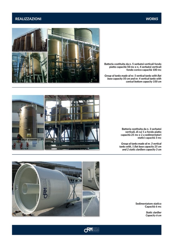 piatto capacità 50 mc e n. 4 serbatoi verticali
