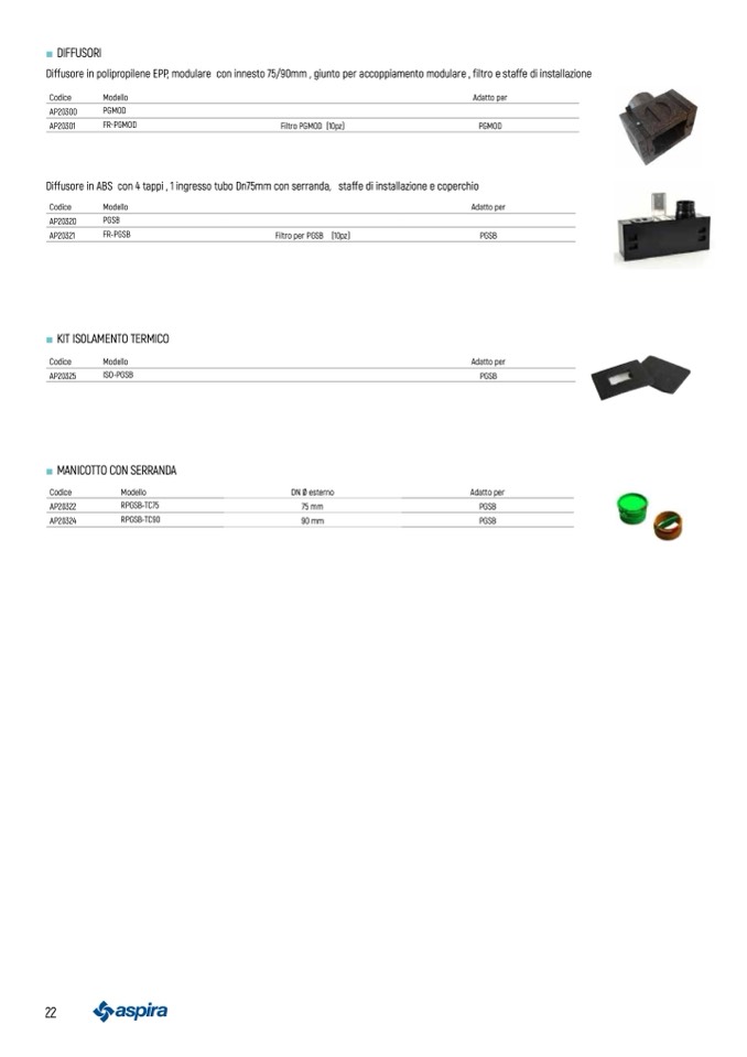 Diffusore in polipropilene EPP, modulare con innesto 75/90mm , giunto per accoppiamento modulare , filtro e staffe di installazione