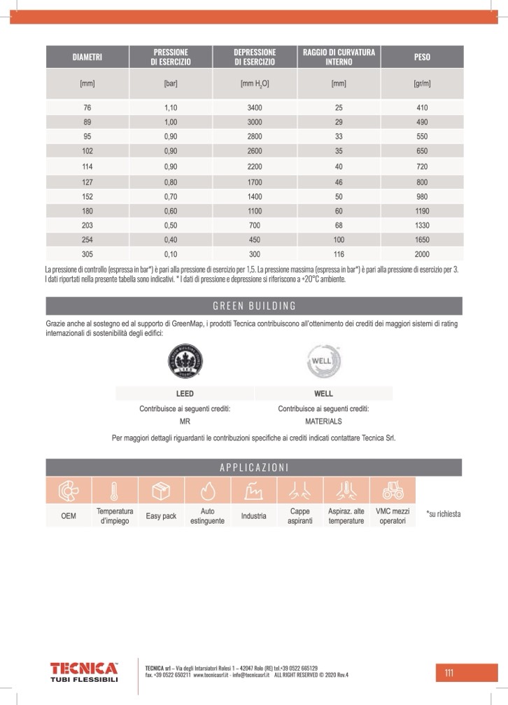 I dati riportati nella presente tabella sono indicativi. * I dati di pressione e depressione si riferiscono a +20°C ambiente.