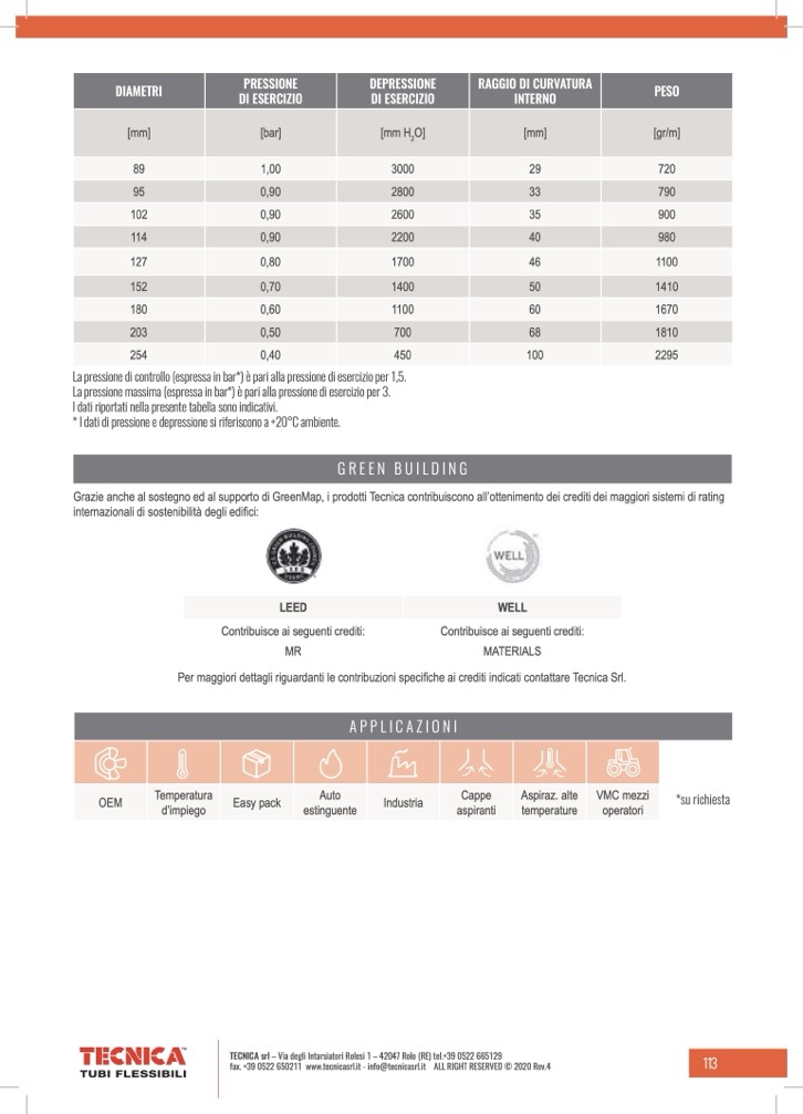 * I dati di pressione e depressione si riferiscono a +20°C ambiente.