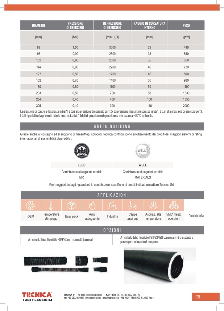 A richiesta tubo flessibile P8 PES/ISO con melammina espansa e