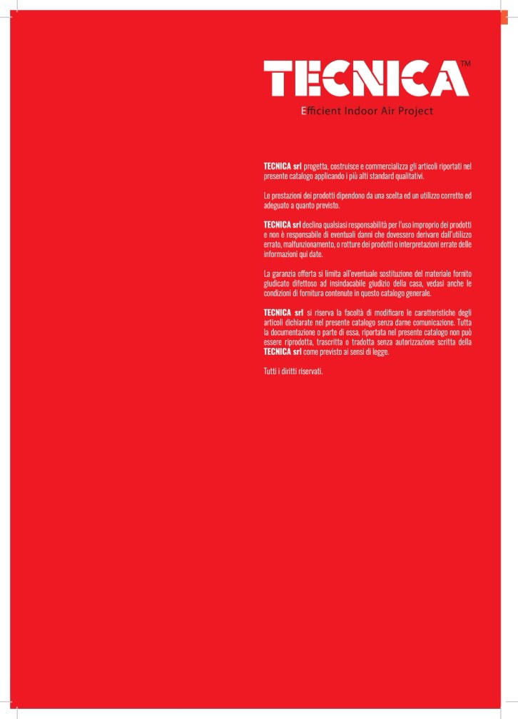 TECNICA srl si riserva la facoltà di modificare le caratteristiche degli
