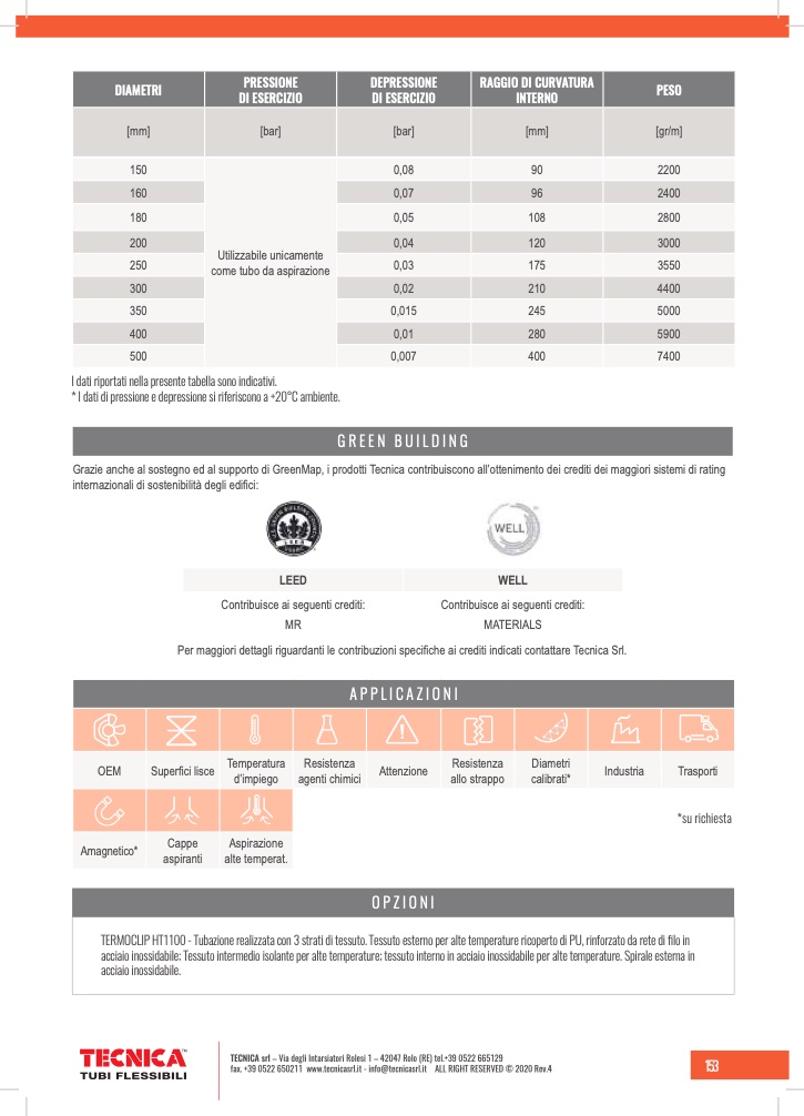 TERMOCLIP HT1100 - Tubazione realizzata con 3 strati di tessuto. Tessuto esterno per alte temperature ricoperto di PU, rinforzato da rete di filo in