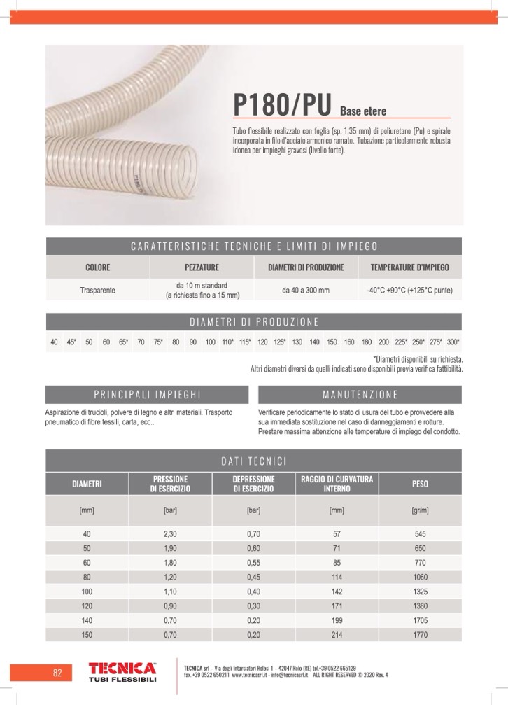 Tubo flessibile realizzato con foglia (sp. 1,35 mm) di poliuretano (Pu) e spirale
