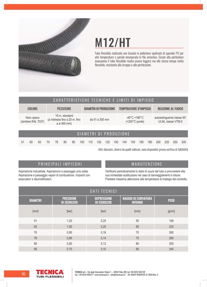 Prestare massima attenzione alle temperature di impiego del condotto.