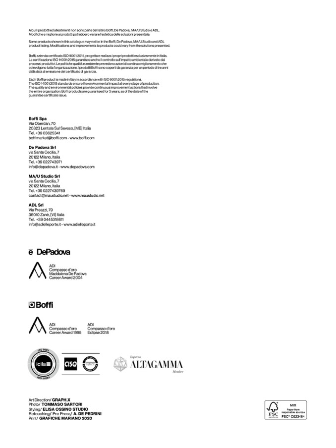 Some products shown in this catalogue may not be in the Boffi, De Padova, MA/U Studio and ADL
