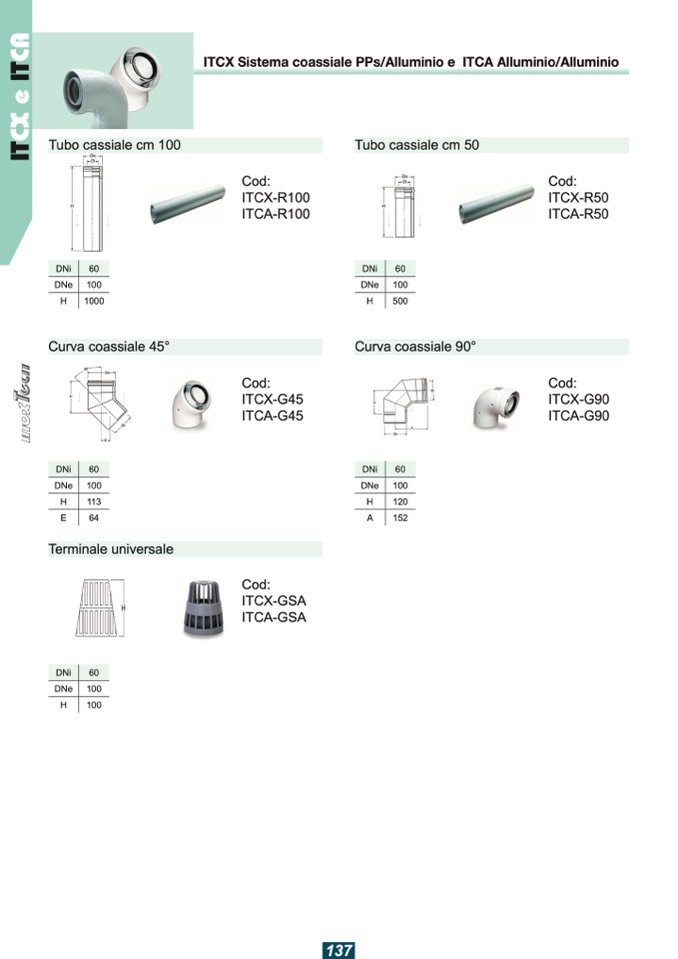 ITCX Sistema coassiale PPs/Alluminio e ITCA Alluminio/Alluminio