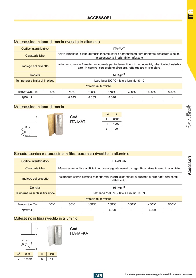 Materassino in fibre artificiali vetrose agugliate esenti da leganti con rivestimento in alluminio