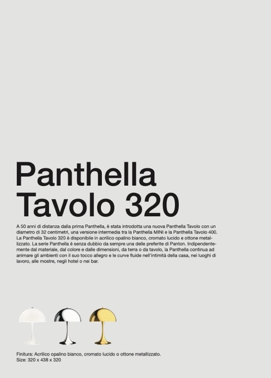diametro di 32 centimetri, una versione intermedia tra la Panthella MINI e la Panthella Tavolo 400.
