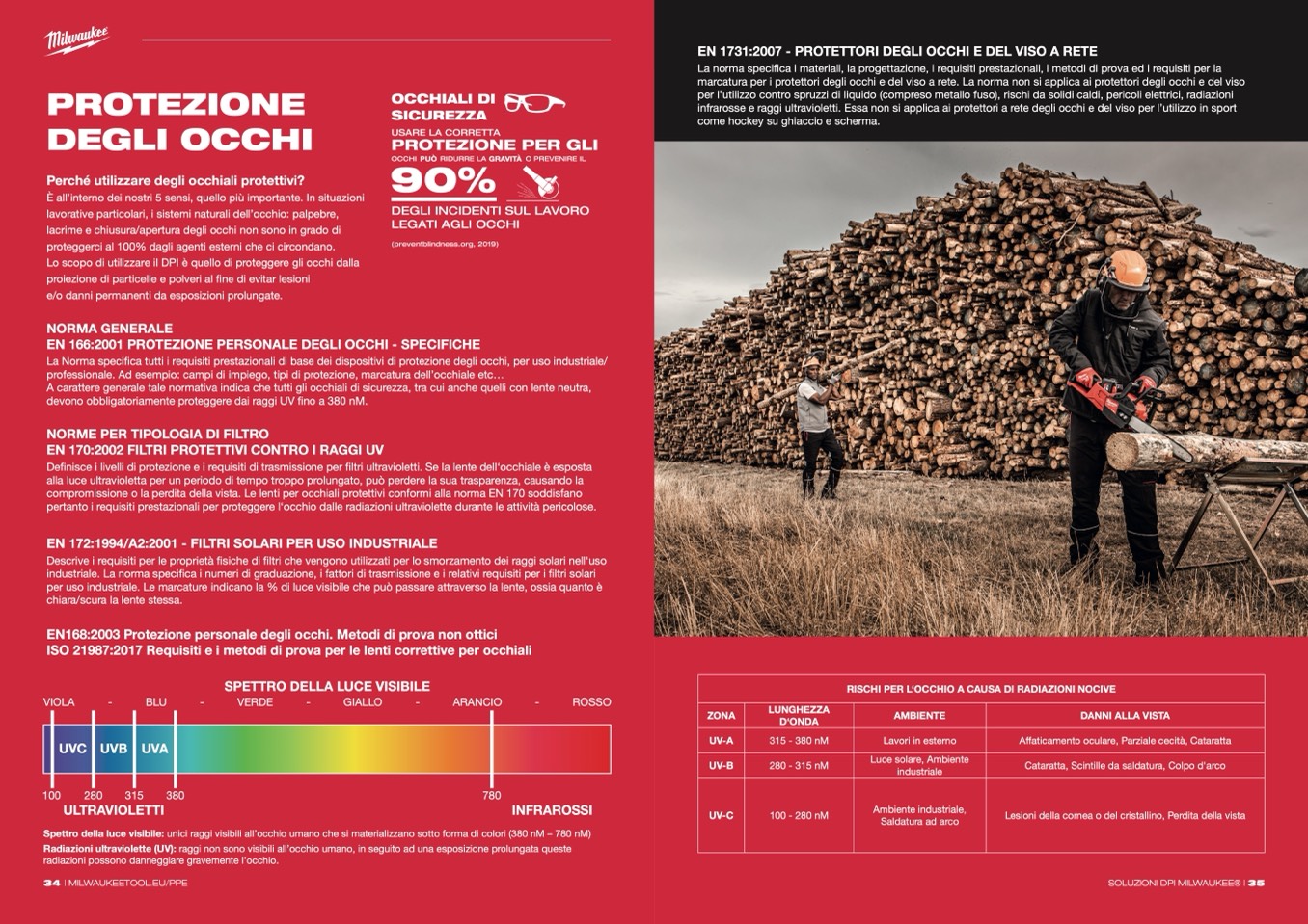 pertanto i requisiti prestazionali per proteggere l‘occhio dalle radiazioni ultraviolette durante le attività pericolose.