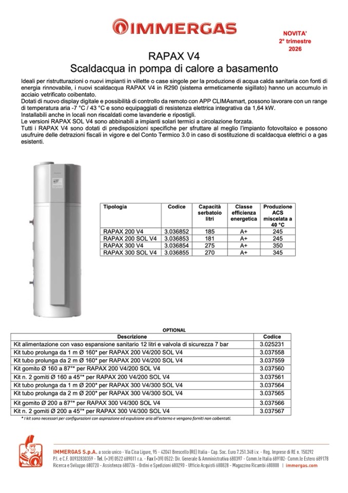 energia rinnovabile, i nuovi scaldacqua RAPAX V4 in R290 (sistema ermeticamente sigillato) hanno un accumulo in