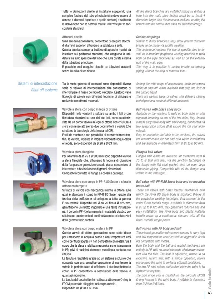 e fredda, sono disponibili da Ø 20 a Ø 63 mm.