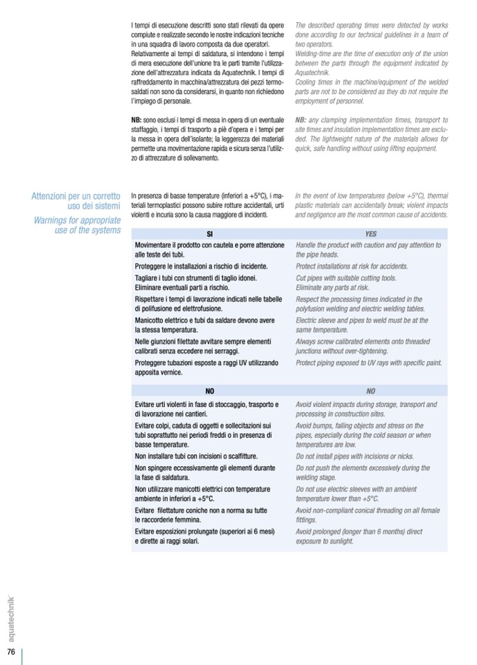 zione dell’attrezzatura indicata da Aquatechnik. I tempi di