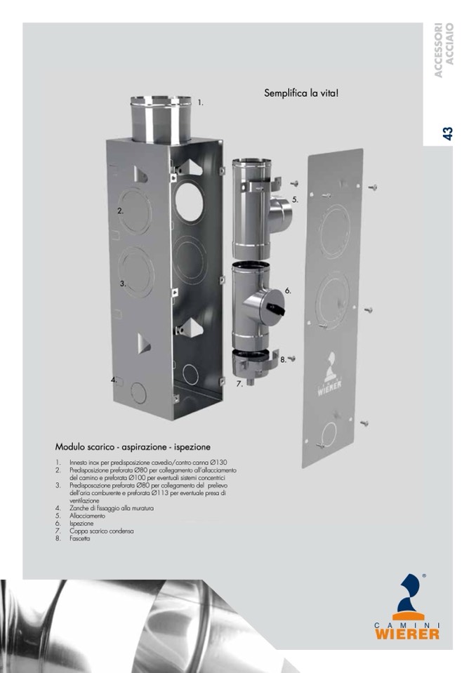 1. Innesto inox per predisposizione cavedio/contro canna Ø130