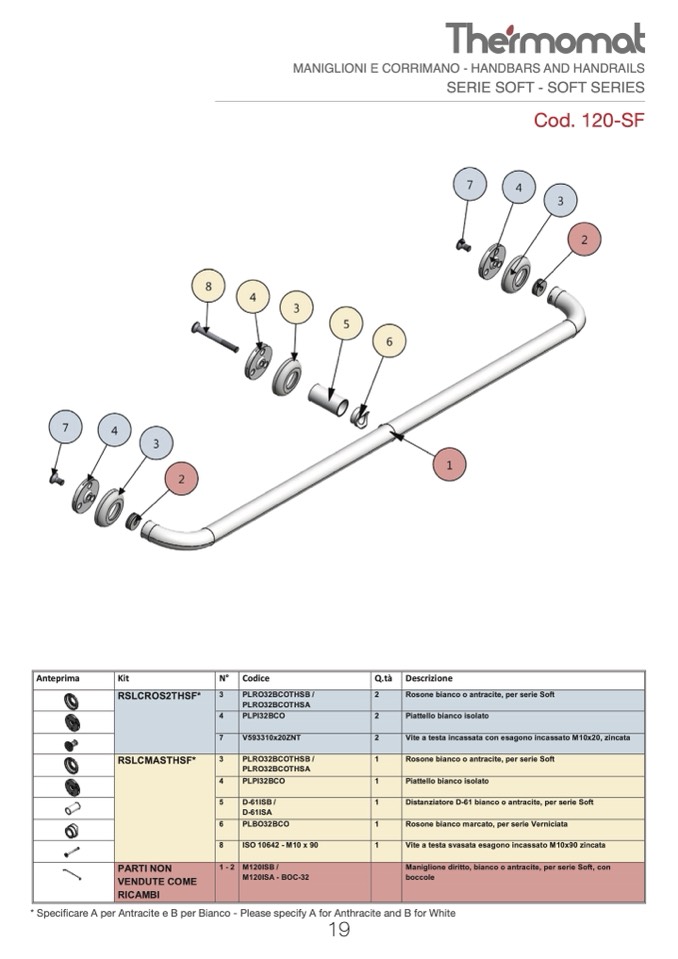 Maniglione diritto, bianco o antracite, per serie Soft, con