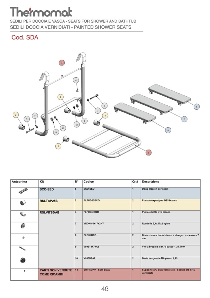 1 Supporto art. SDA verniciato - Seduta art. SRD