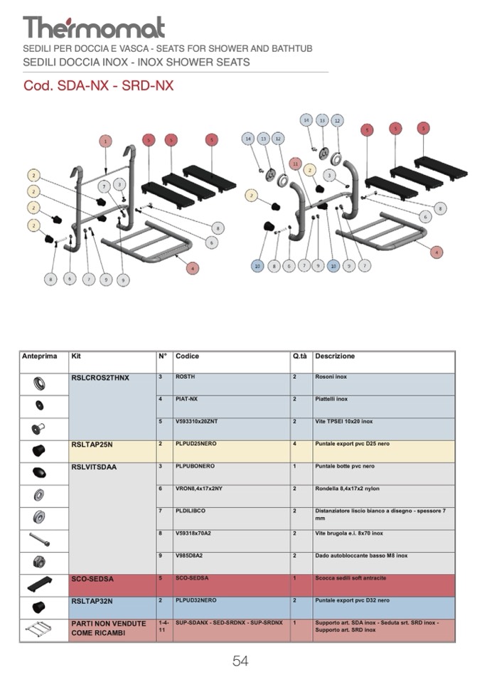 Supporto art. SDA inox - Seduta srt. SRD inox -