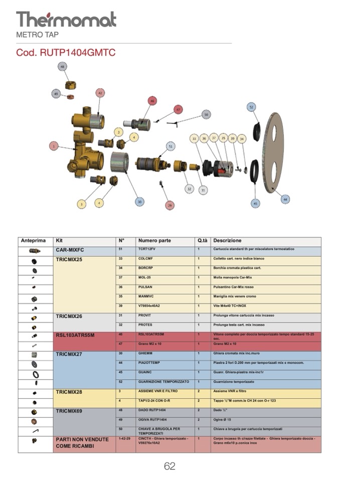 Cartuccia standard th per miscelatore termostatico