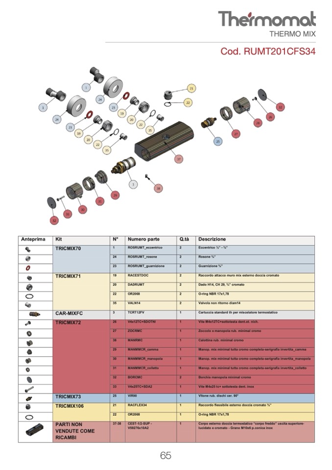 Cartuccia standard th per miscelatore termostatico