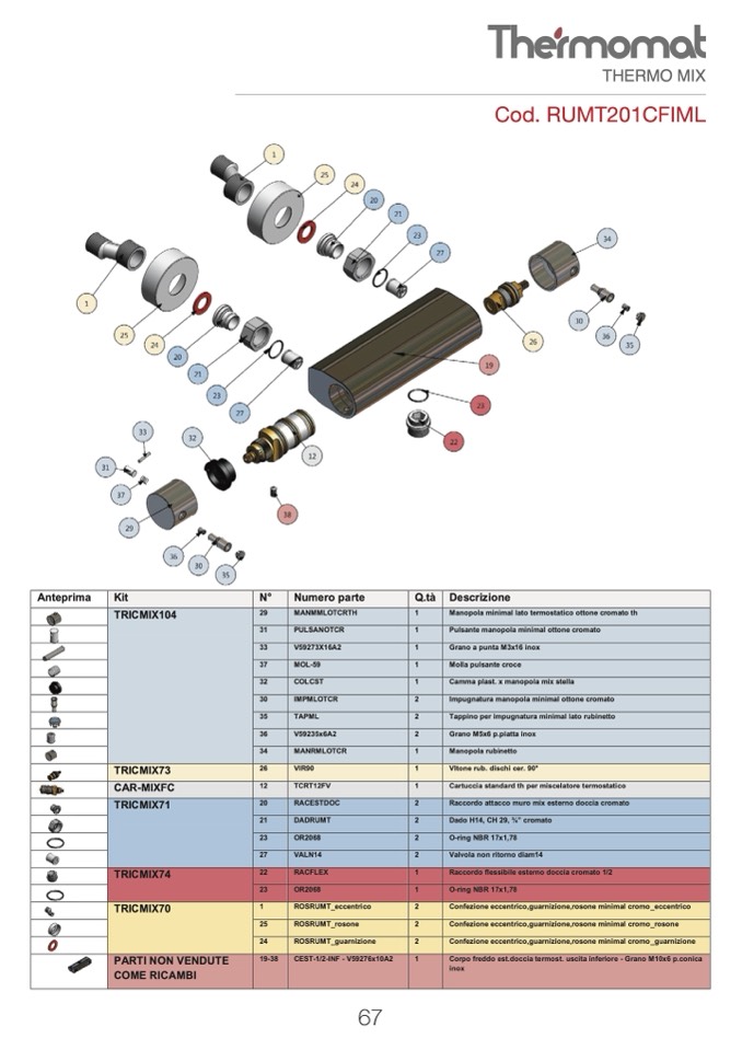 Corpo freddo est.doccia termost. uscita inferiore - Grano M10x6 p.conica