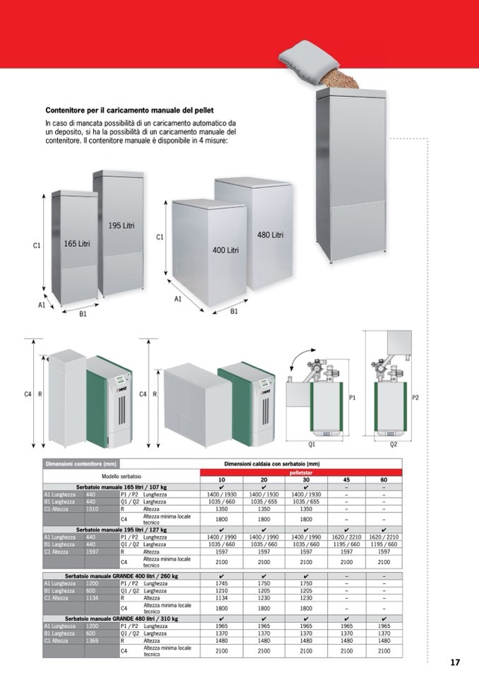 Dimensioni caldaia con serbatoio (mm)