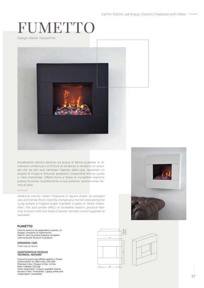 Camino elettrico da appendere a parete, no