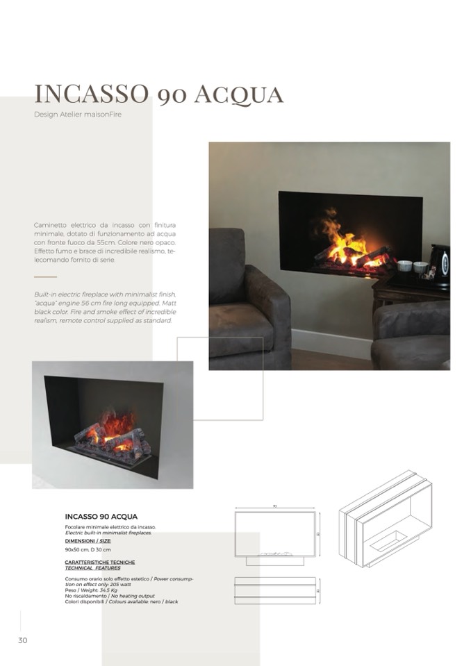 Focolare minimale elettrico da incasso.