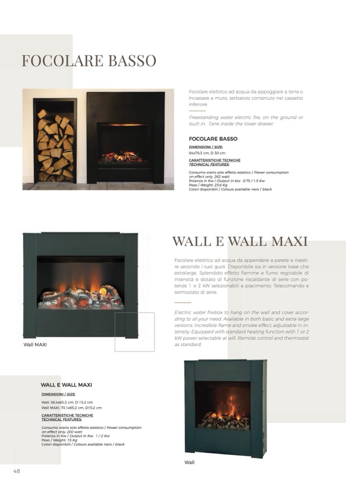 Focolare elettrico ad acqua da appendere a parete e rivesti-