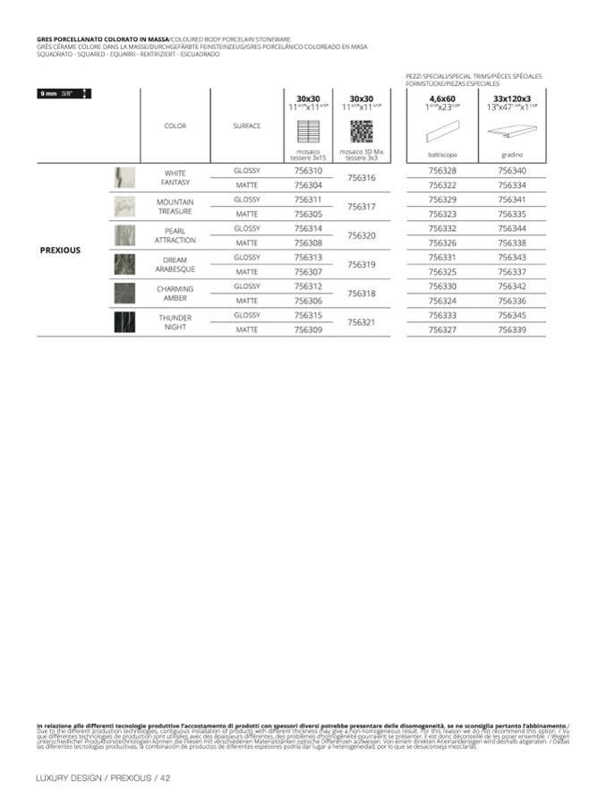 fferenti tecnologie produttive l’accostamento di prodotti con spessori diversi potrebbe presentare delle disomogeneità, se ne sconsiglia pertanto l’abbinamento./